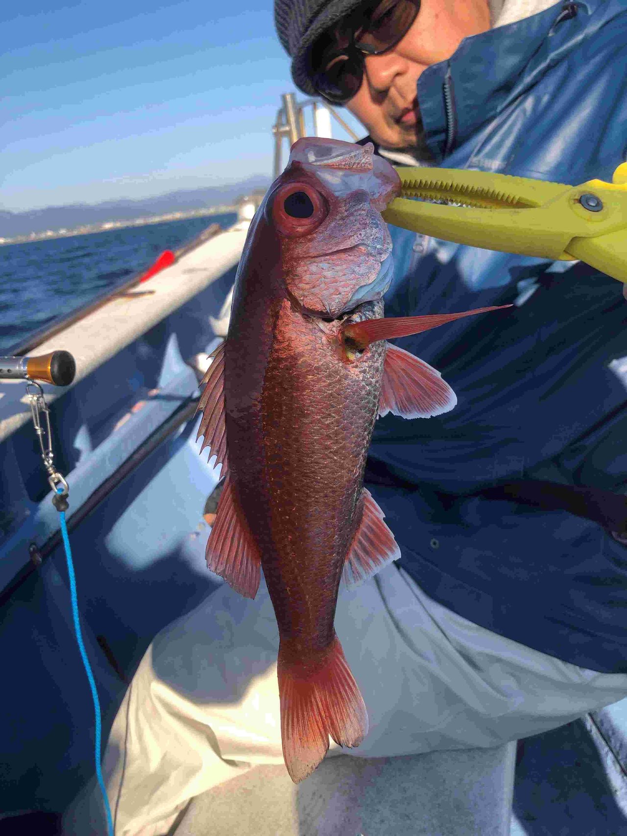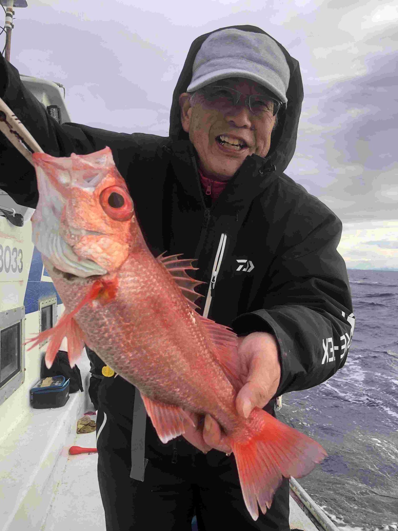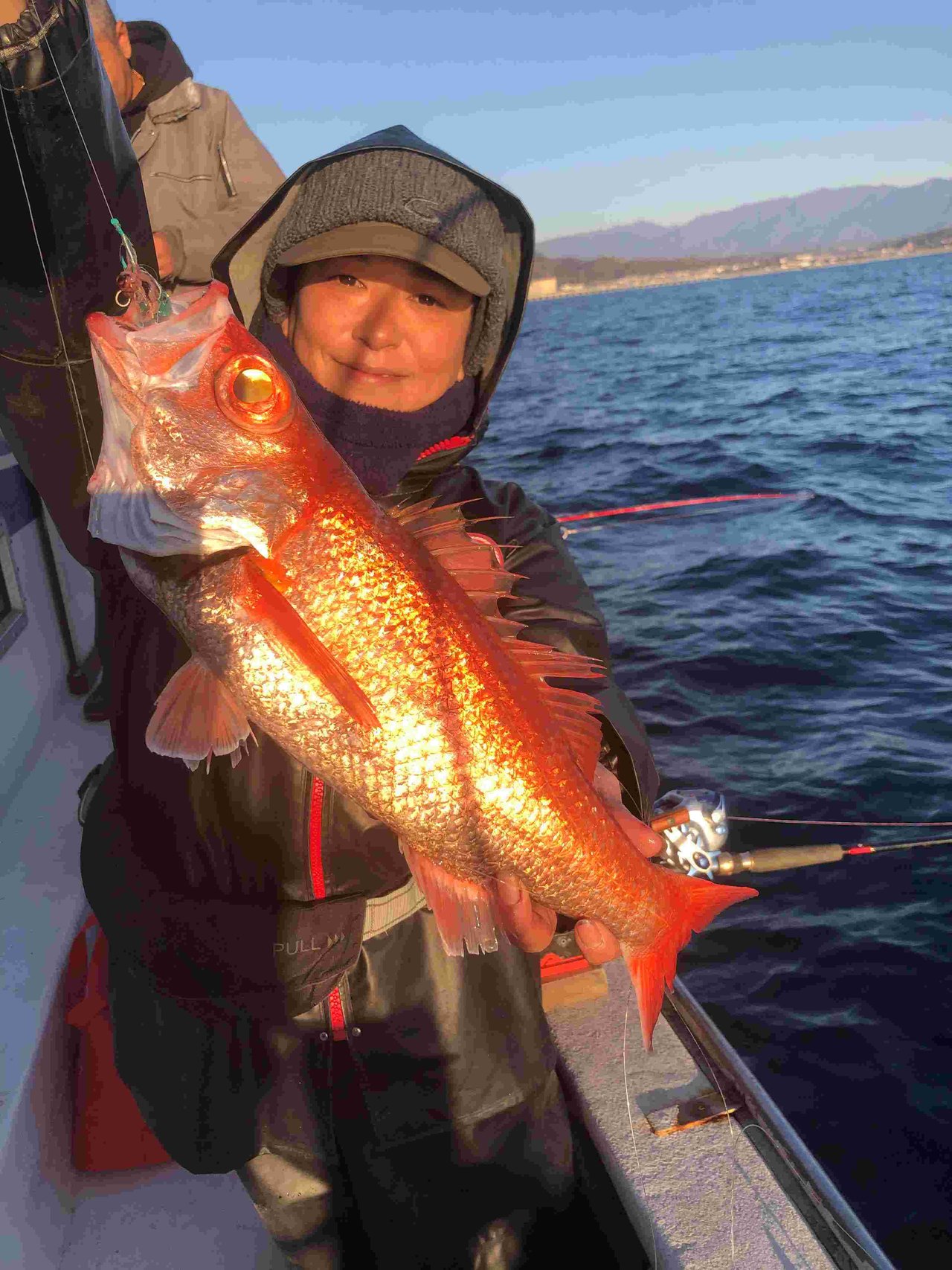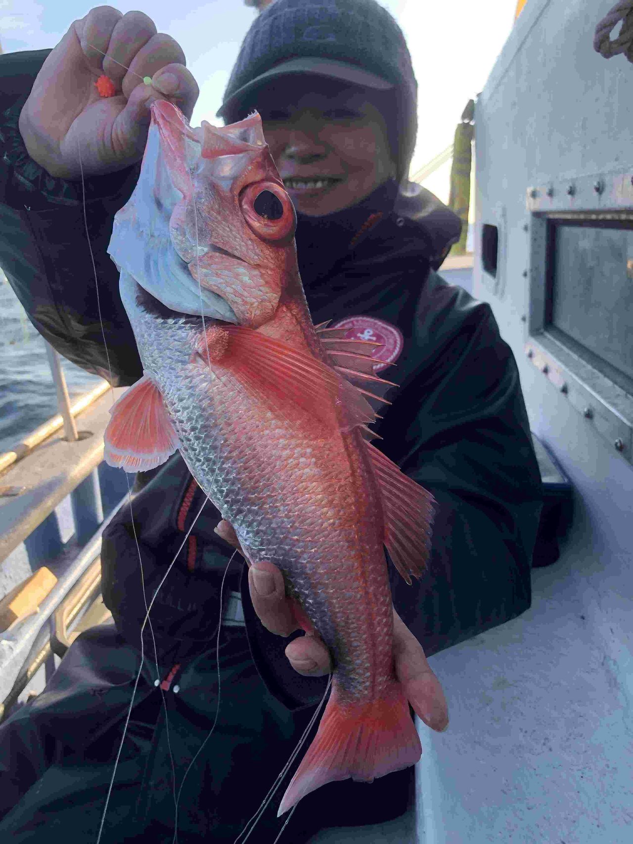 最初の1流し目からキャサリンがいきなり本命のアカムツ!前回に続いてまたまたゲット♪