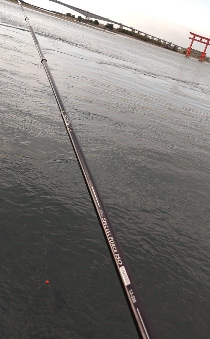 ■竿:ISOスタイル スペシャルフォースイソ リミテッド 1.2-530 ■リール:c3000番 ■道糸:銀鱗SSブラックマスターエクストラ2号 ■ハリス:トヨフロンLEXハイパー1.5号 ■ハリ:沖アミチヌ3号 ■エサ:チヌパワー激重+オキアミL3kg クワセオキアミSPL 喰い渋りイエロー ■ウキ:大征黒0号・5B