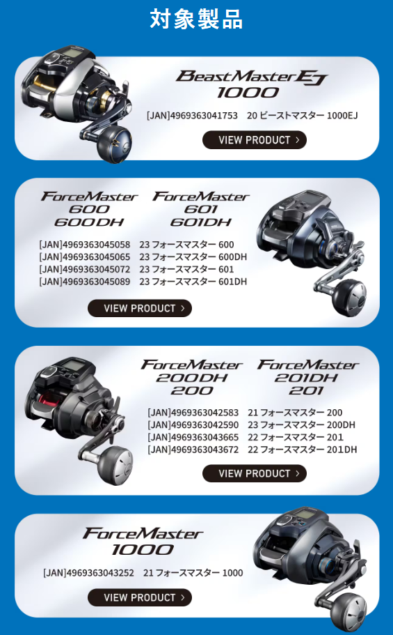 対象の電動リールはこちらです