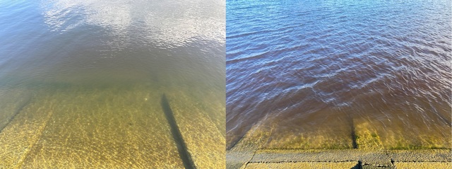 ビッグバン斜め向かいにある水門辺りを境に、上流側と下流側で濁り方が全然変わっていました。
