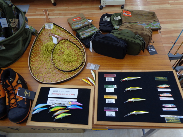 サクラマスハイジ―ズンに向け、フォックスファイヤー製品「ウェーダー、ベスト、ジャケット、シューズ」など展示、ご注文承ります。