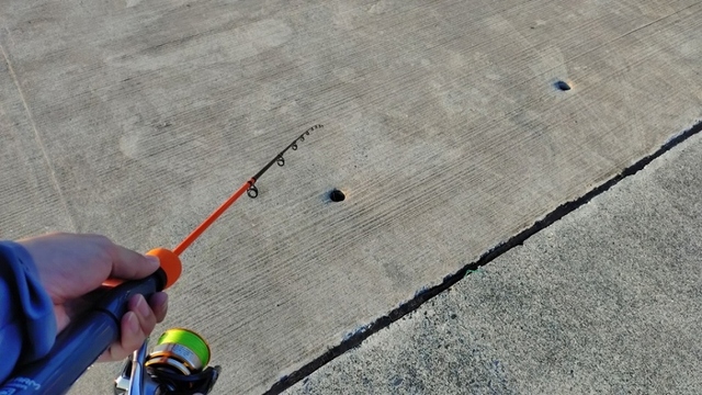 漁港の護岸に点在する「穴」で釣る!正真正銘の穴釣りですね(;^ω^)