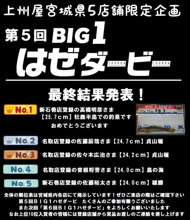 「第6回BIG1ハゼダービー」にてまたお会い致しましょう!!