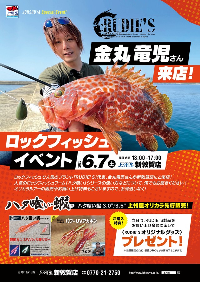 新敦賀店店内にて RUDIE’S(ルーディーズ) ロックフィッシュベントを開催いたします。