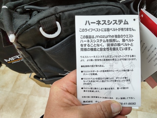 タイドマニアライフジャケット 肩の負担軽減ハーネスシステム