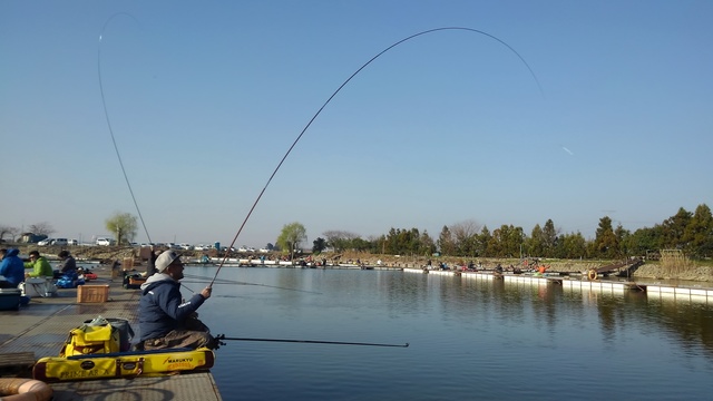 当日は講師としていて来て頂いた、パワフル長竿氏西田一知インストラクターの隣で竿を出させて頂きました(∩0∩)