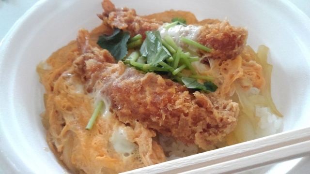 昼は選択弁当で【海老フライのと卵とじ丼】を選択(∩0∩)