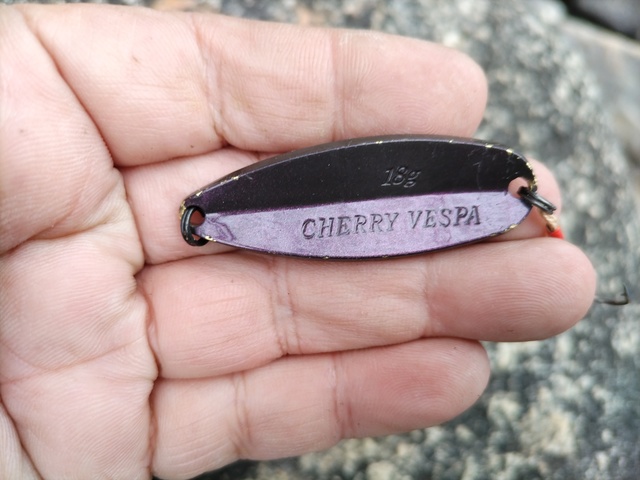 なんと西本氏から借りたチェリーベスパ(ゴーストカワエビ)1投目でGET