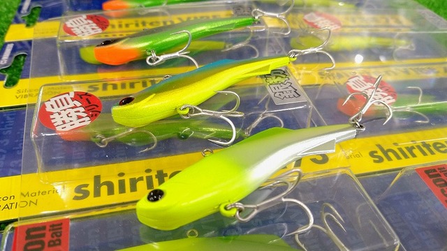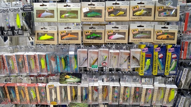 こんな感じでシーバス用バイブのコーナーに並んでいます。
