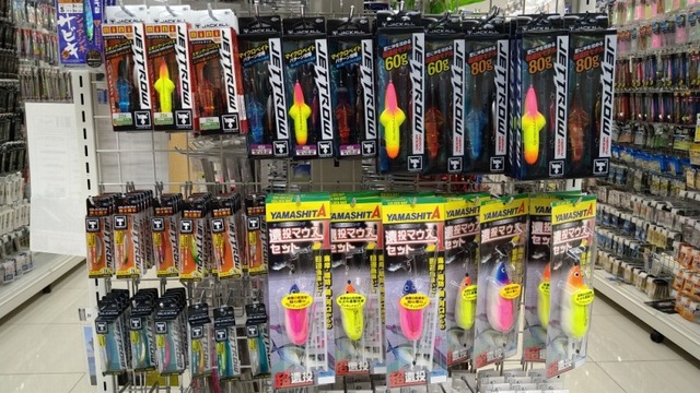 ルアーコーナーのジギングサビキが並んでいる面に並んでいます。