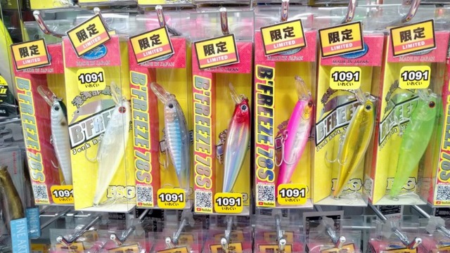 LuckyCraftルアーたちの並んでいる面の上のほうに並んでいます。