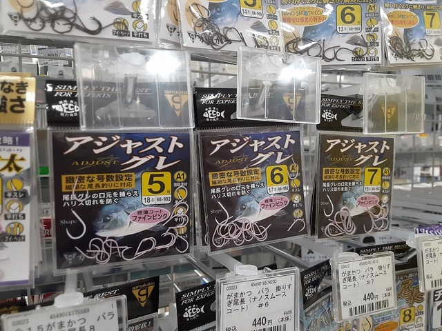 当店では訳あって入荷が遅れていましたガマカツ2026NEWグレ針【アジャストグレ】画像のサイズ入荷しました。(グレ釣りシーズンも折り返し地点ですが・・・)