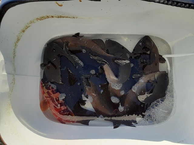今期8回目の磯釣り釣行、今回は少しでも魚っ気のありそうな西伊豆小下田の沖磯へ行ってきました。水温14℃台の寒グレシーズンもちろん簡単な訳がありません。ハリスは1.7から1.5号へ最後は1.2号まで、グレ針も7~細軸の4号まで落としました。それでも喰いこまない小さなアタリ(エサ取り?)もあり25cm級は放流しながら、どうにか最大35cmクラス~8枚キャッチできました。0号ウキのふわふわ仕掛けで小型尾長を数枚、良型口太メジナは2Bウキの2B水中ウキの棚取り最優先仕掛けでの釣果でした。ウキ下は1本半からの沈め釣りなど反応が良かったです。朝一はウネリが有りましたが最後はいい凪になりました、非日常感が味わえる磯釣りはストレス解消、命の洗濯にも最適です・・・