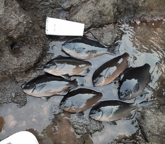 予報に反して西風がやや強かったですがうまく風裏側のポイントに渡してもらった為、終日メジナのアタリはポツポツとありました。
