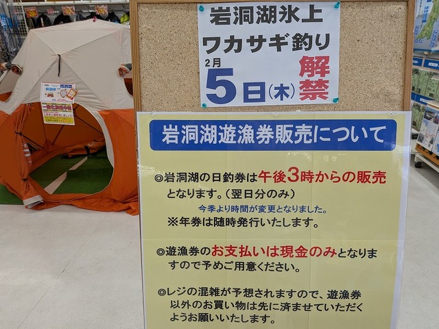 2026年1月21日セール・イベント 岩洞湖氷上ペアワカサギ釣り大会【満員御礼】! 第12回上州屋&OWNER CUP岩洞湖氷上ペアワカサギ釣り大会は お陰様で「満席」となりました! お申込み頂いた参加者の皆様、楽しみにお待ちください! また、現在はキャンセル待ちを受け付けております・・。 上州屋からのお知らせ ・会員証機能を搭載!お買い物や釣りの準備がもっと便利になる上州屋“公式”アプリ登場!・【上州屋メンバーズカード】毎月5の付く日と30日(5日、15日、25日、30日)はポイントアップデー!