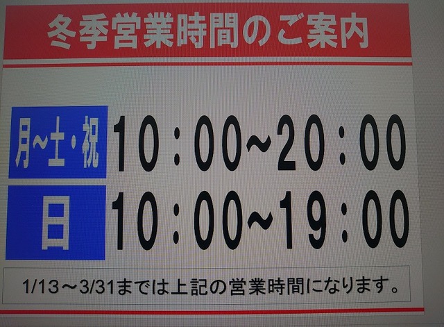 牛久店冬季営業時間のお知らせ!