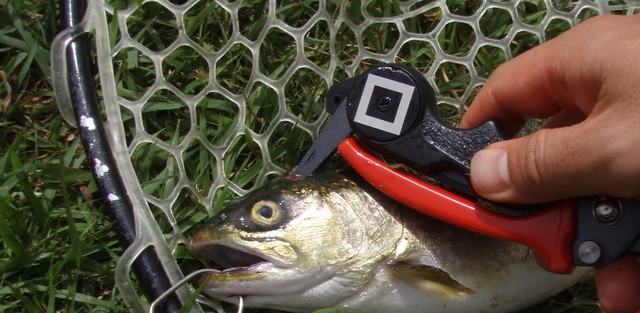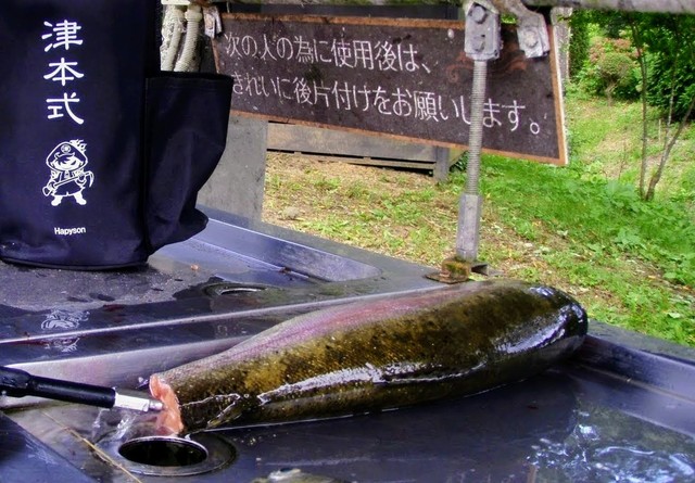 また、1本でニジマスを素早く安全にさばく事の出来る「津本式計測マルチハサミ」も使用してます。