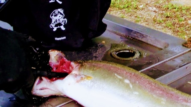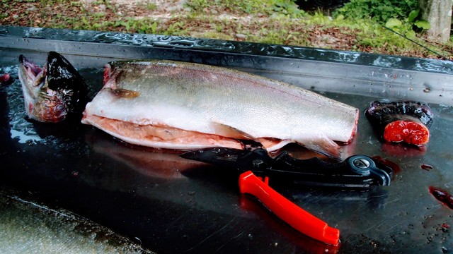 新鮮な釣りたてのトラウトを処理するのは釣り人だけの特権です!