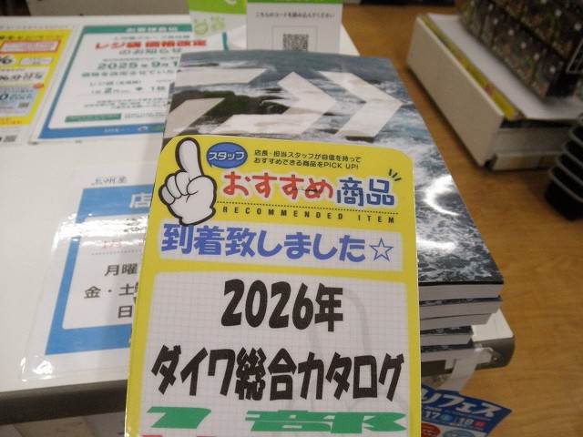 2026年1月16日その他・お知らせ 2026年ダイワ総合カタログ販売スタート!! 出典: ダイワ 2026 総合カタログ販売スタートです☆数に限りが御座います☆ご希望御座いましたら、レジにて販売いたしております☆お気軽にご来店下さい☆ 上州屋からのお知らせ ・会員証機能を搭載!お買い物や釣りの準備がもっと便利になる上州屋“公式”アプリ登場!・【上州屋メンバーズカード】毎月5の付く日と30日(5日、15日、25日、30日)はポイントアップデー!