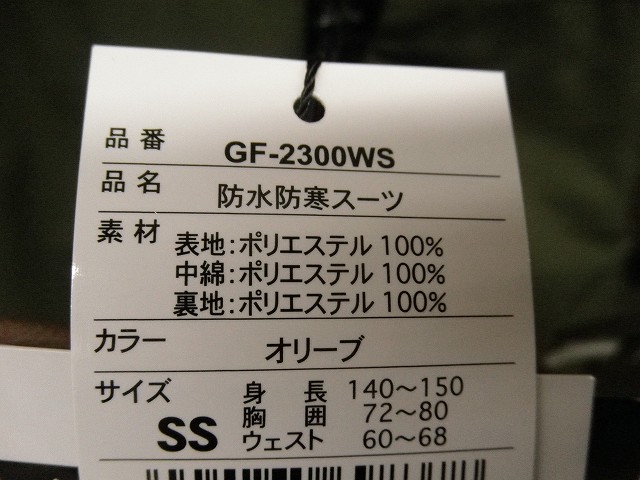 GETT防水防寒スーツSSのサイズ表です!!