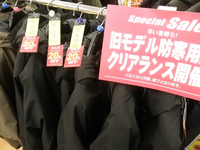 只今開催中の防寒クリアランスセールは見逃せない!!