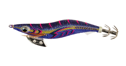 シルエットが際立つ紫ボディは、深場や闇夜など最も暗い状況下で効果を発揮。蛍光柄のアクセントで、ナーバスな大型イカも魅了する。