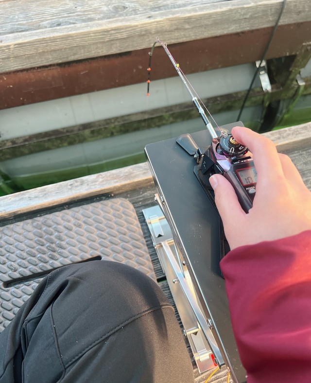 黒沢副店長の左手があがり、やっとワカサギが回って来ました!
