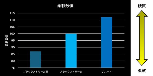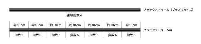 通常のブラックストリームの柔軟性を6段階評価で4とすると、ブラックストリーム極は新技術により10cm間隔で5と6の異なる柔軟糸質に変化させていて驚異的な柔軟性が特徴です。
