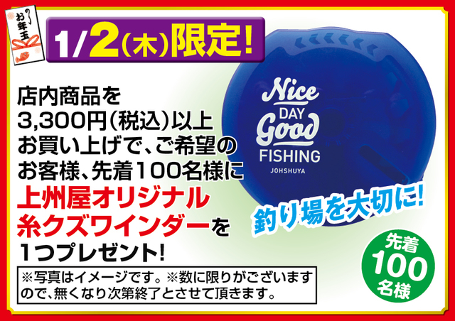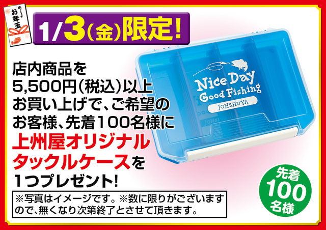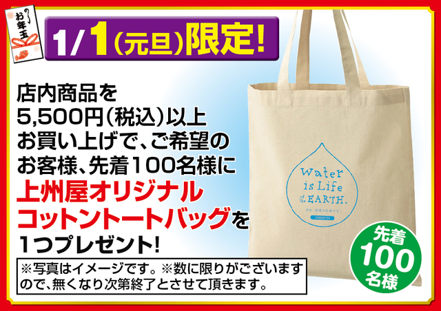 あけましておめでとうございます。 昨年は多くのお客様に上州屋各店をご利用頂き、誠にありがとうございました。本年も変わらぬご愛顧のほど、お願い申し上げます。