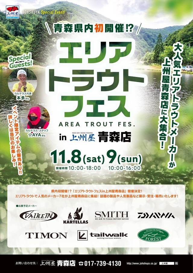 今週末は【エリアトラウトフェスIn上州屋青森店】!!