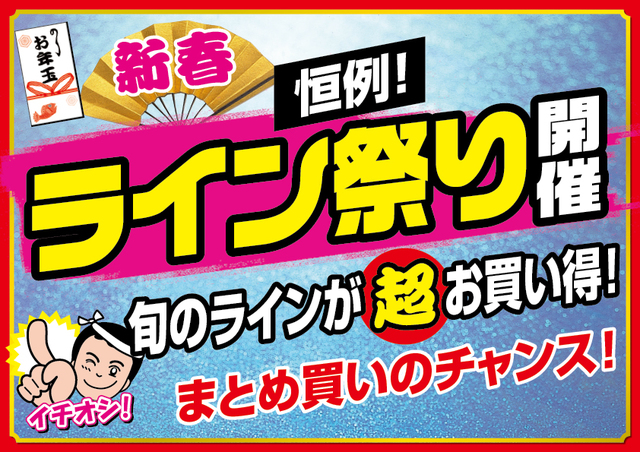 セール期間中、青森県内上州屋3店舗にて新春ライン祭り開催!当店指定、旬のラインが超お買い得!まとめ買いのチャンス!