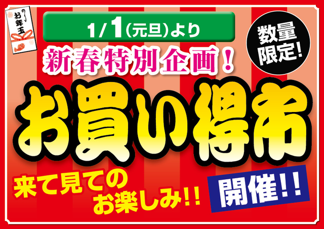 2026年1月1日(元旦)より青森県内上州屋3店舗にて数量限定お買い得市を開催!何が出るかは来て見てのお楽しみ!