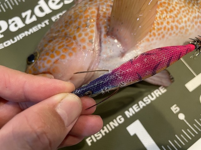 エギ王K3.5号シャローをメインに使用して胴長24cmを筆頭に6杯の良型アオリイカとおまけにキジハタも釣れました(エギで)