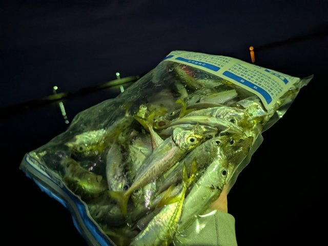 東港ではエギングの釣果がメイン。小型青物・中アジも釣れています。