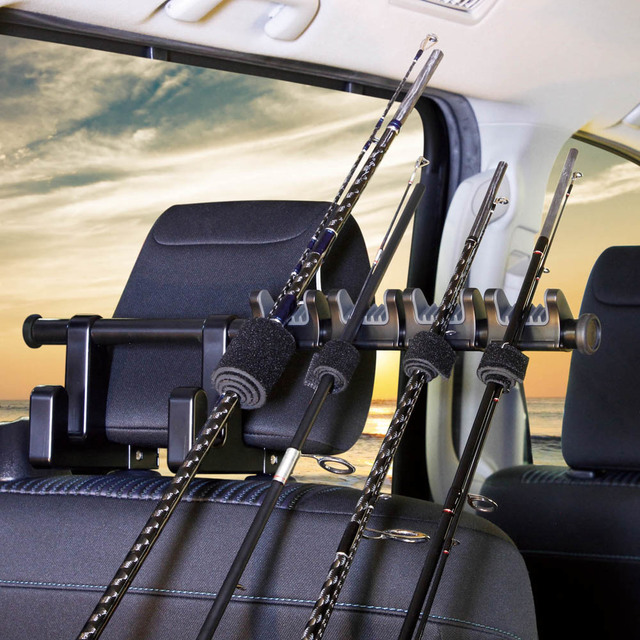●釣竿を置くだけ。ヘッドレスト用ロッドホルダー。