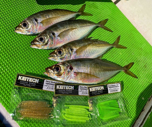主に2.5インチを使っていますが、15㎝の小アジから40㎝を超えるギガアジまでカバーできます!