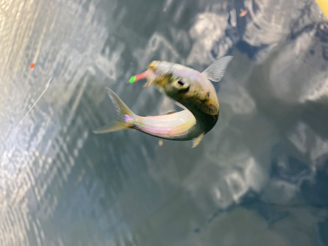 夕方4時になると、ポツポツとイワシが釣れ始めました!!