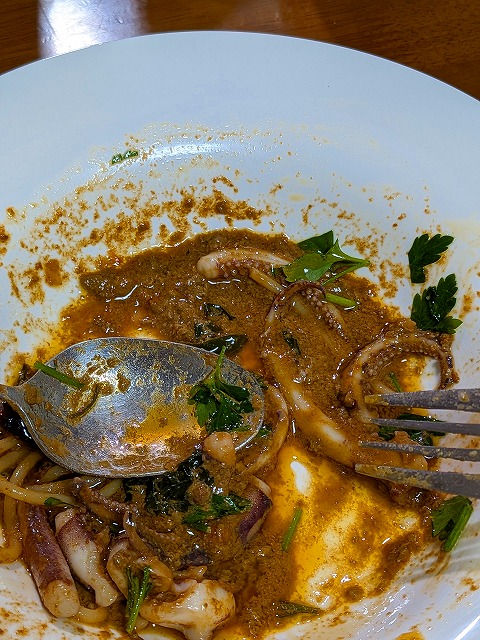 せっかくなんで、残ったソースはパンで一滴残らず食べときましたー♪