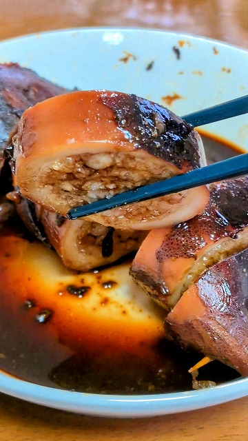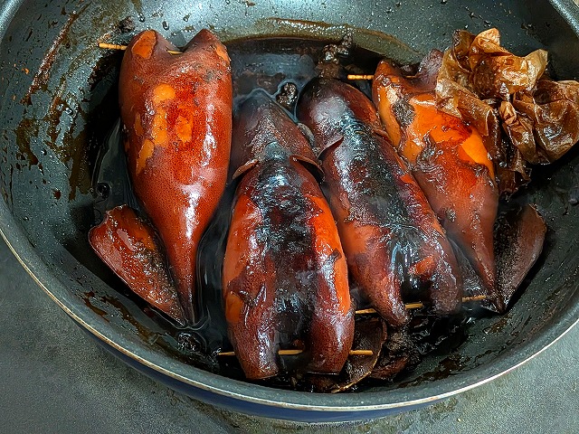 まずは、美味しい美味しいイカメシです。煮てる最中にイカゴロ一本投入っす。汗