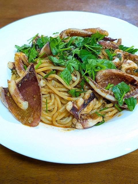 次は、イカワタのパスタw