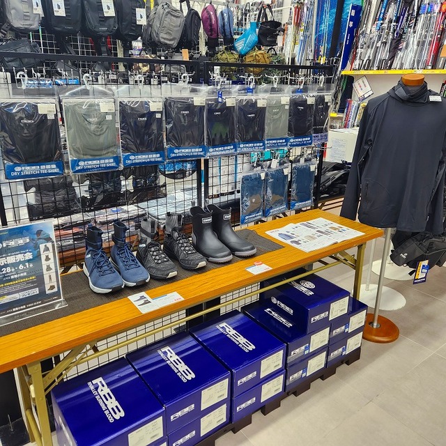 2025年5月28日(水)~6月1日(日)の5日間、上州屋豊橋小向店にてRBBウェーダー、ゲームベスト、シューズ、ポーチ、メジャーなどの展示即売会を開催中!