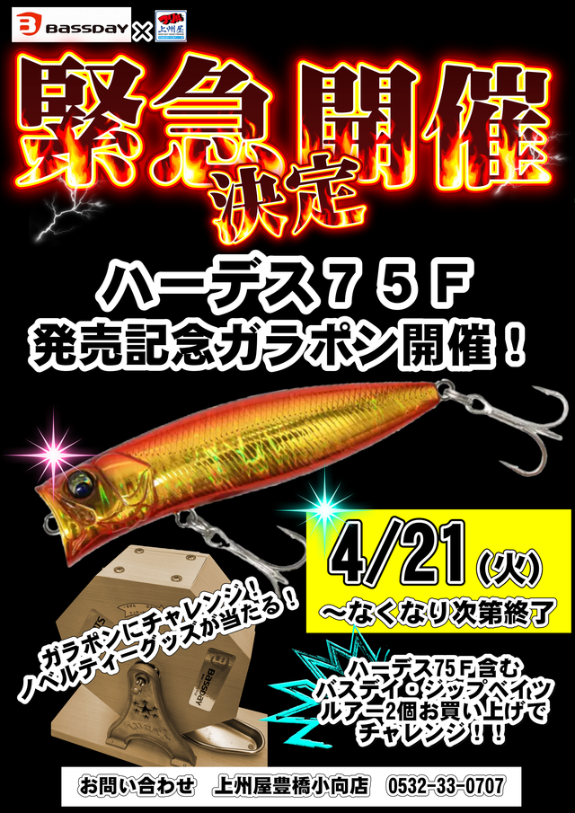 2026年4月7日おすすめ商品 エリアルアー【1089工房】さかさにょろFS入荷♪ 低活性のマスを狙う定番ルアー1089工房 さかさにょろ35FS 6色入荷しました、数量が少な目ですのでお早めのご来店お待ちしております。 上州屋からのお知らせ ・会員証機能を搭載!お買い物や釣りの準備がもっと便利になる上州屋“公式”アプリ登場!・【上州屋メンバーズカード】毎月5の付く日と30日(5日、15日、25日、30日)はポイントアップデー!
