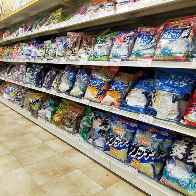 エサはマルキュー製品をメインにやベーシックのへらエサもズラッと取り揃えています!