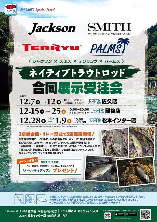 人気メーカー4社のトラウトロッドを実際にさわって振り比べ出来るチャンスです!