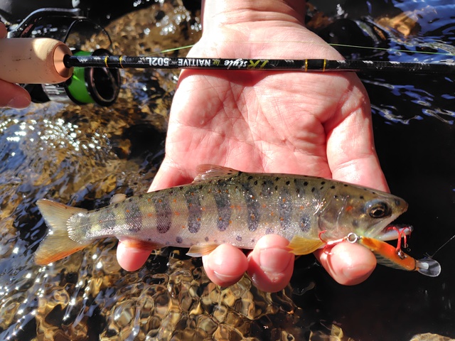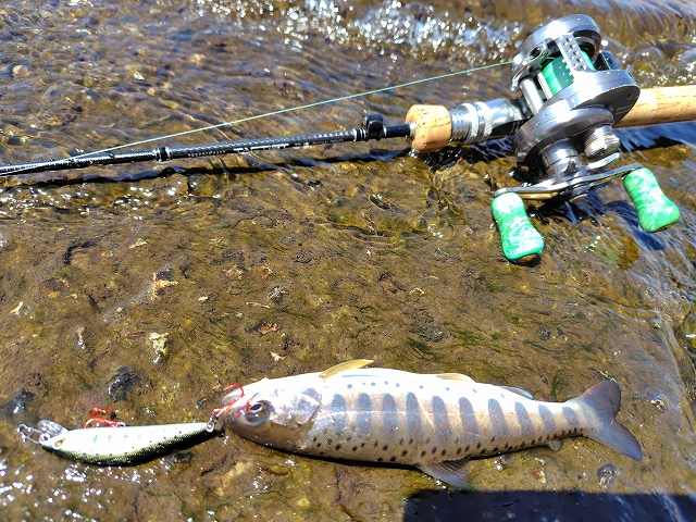 それでもやっとアマゴがヒット!しかしこれはバレ。