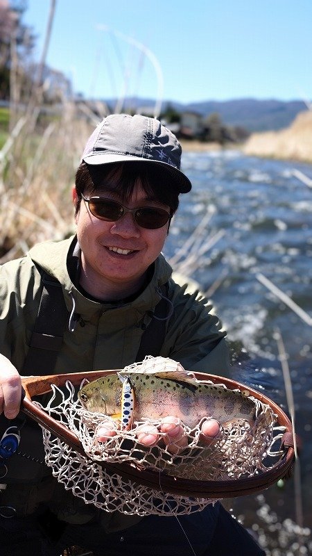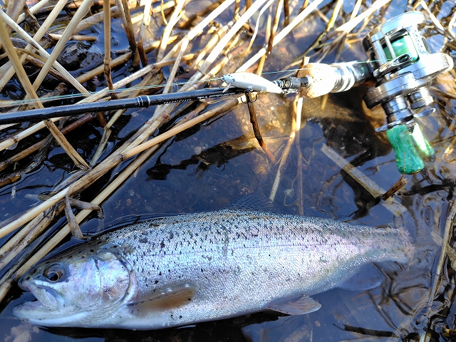 ようやくヒット!すぐにジャンプを繰り返したのでレインボーだな~と思ったらやっぱりレインボー!(下記写真の魚が釣れました)