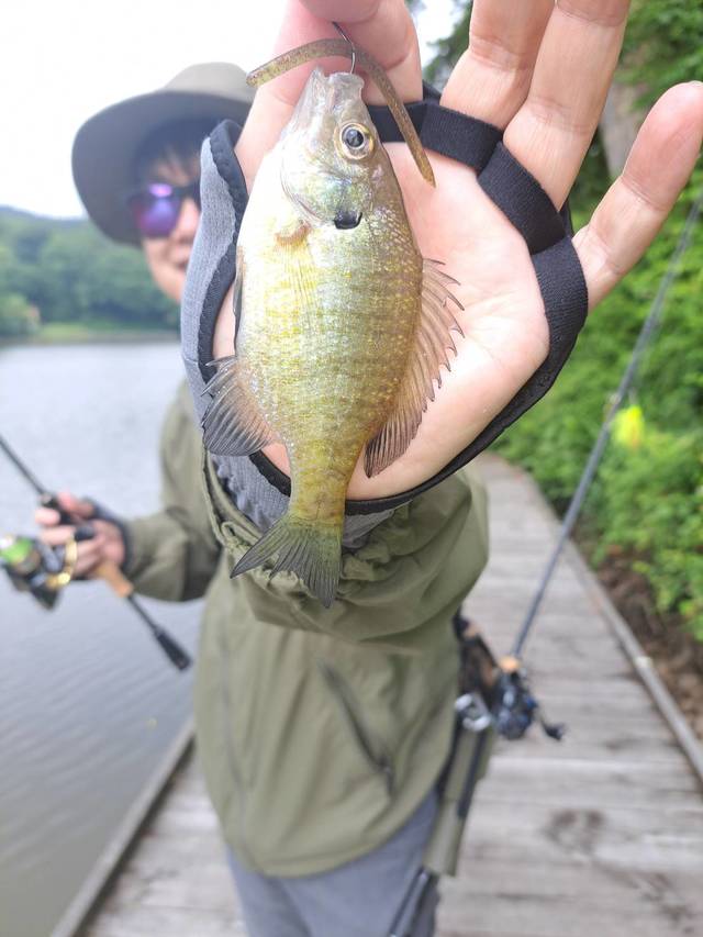 ルアーのサイズを小さくすると結構反応するのですが全部ギルっぽいですね(;´・ω・)