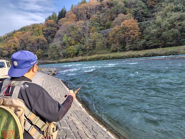 たまたまパームスの川根氏が釣りをしていたので、お話しを聞くと先日は数匹釣ったようですが、今日はバラしのみ。ちょっと厳しかもとの事。