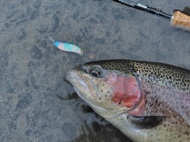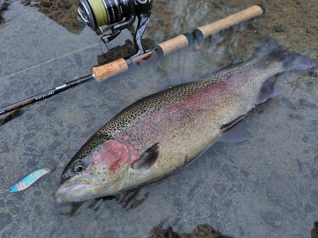 放流レインボーが釣れました♪