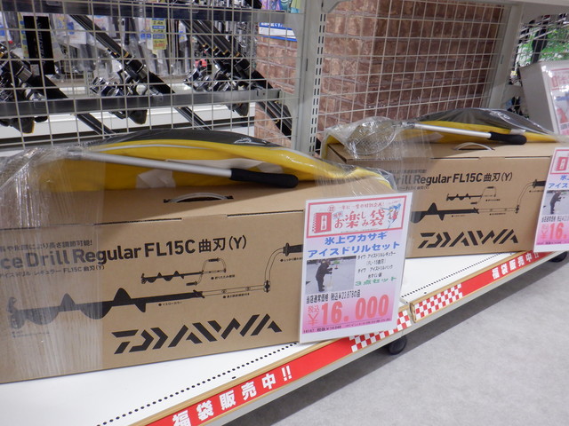 ワカサギコーナーからは美鈴湖のワカサギ釣りで活躍間違い無しのテントや、氷上ワカサギ釣りでは欠かせないアイスドリルの福袋をそれぞれ販売します。